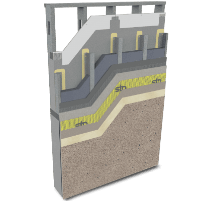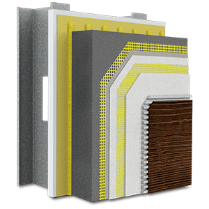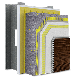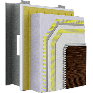 Incorporates StoGuard Air and Water-resistive Barrier (AWRB), mineral wool insulation. The StoVentro sub-construction provides a structural system that creates a rainscreen cavity for managing moisture, carries the dead load of the cladding, and resists wind load