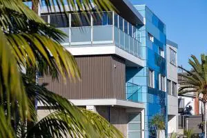 Zislis Residence: A successful entrepreneur chose the StoVentec® Glass Rainscreen® System in Pastel Blue, Light Blue, and Azure Blue to create an impressive, eye-catching home for his family.