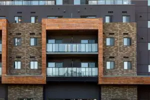 B-Line Condominiums in Toronto, Canada, utilized StoPanel® Classic NExT ci and StoCast Wood, StoCast Brick, StoSignature® Stone, and StoColor® Acryl Plus to achieve modern, multi-facade aesthetics with continuous insulation.
