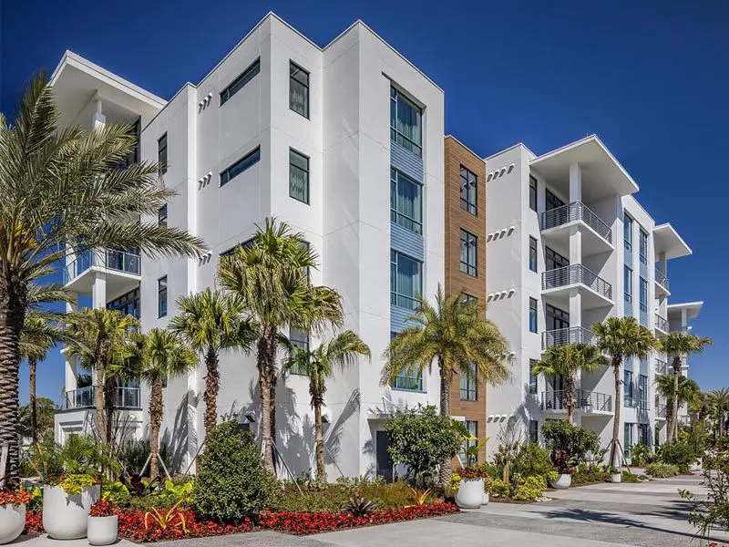 To achieve a high-end look within budget, the team used StoTherm ci and StoLit Milano in a smooth finish—delivering the appearance of sleek metal while saving $1 million in material costs.