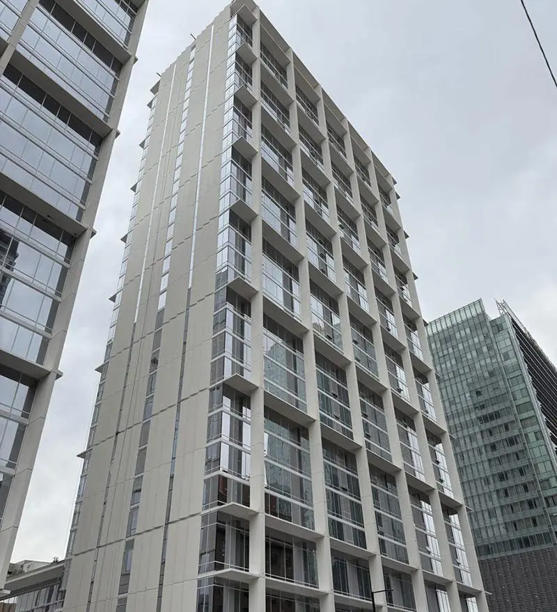 Designed to integrate with a busy transit hub, this mixed-use development includes residential towers, retail, and creative office space. StoTherm ci helps bring modern performance to this high-traffic urban environment.